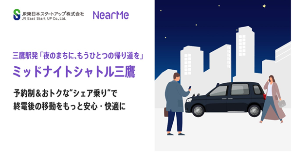 JR東日本スタートアップとNearMe(ニアミー)は、2025年6月6日から9月27日まで、三鷹駅発の新たな移動サービス「ミッドナイトシャトル三鷹」の実証実験を実施すると発表した。運行日は、サービス期間中の金曜日、土曜日となるそうだ。