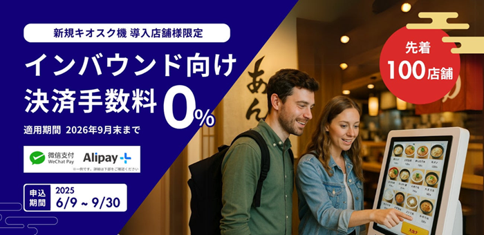 同キャンペーンでは、キオスク端末における海外QRコード決済利用時の決済手数料を0%とすることで、店舗におけるインバウンド対応を促進し、レジ業務削減による業務の効率化を支援するという。