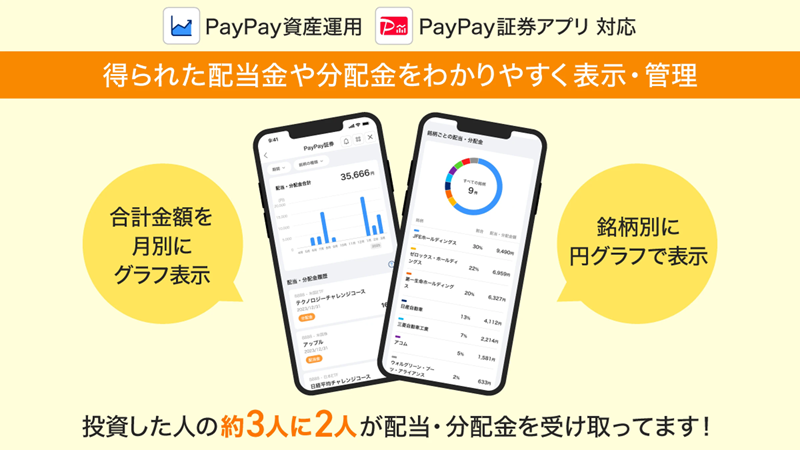 また、PayPay証券では、昨年1年間で資産運用を行った人うち約3人に2人が配当金、分配金を受け取っているという。今回の機能提供によって、より多くの人の運用成果を「見える化」し、資産運用を継続してもらうことを目指す。