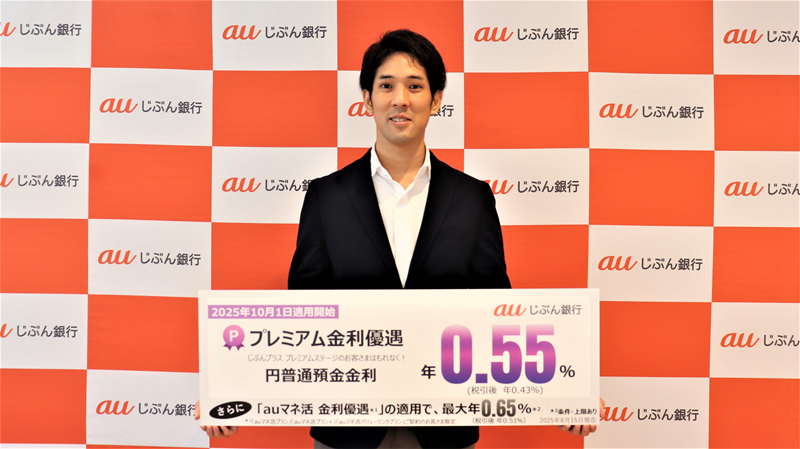 auじぶん銀行は、これまでKDDIグループと連携して「auまとめて金利優遇」「auマネ活 金利優遇」などを展開してきたが、新たに円普通預金で優遇金利年0.55%(税引き後年0.43%)となる「プレミアム金利優遇」を2025年10月1日から提供すると発表した。「auマネ活 金利優遇」と合わせて、合計年0.65%(税引後年0.51%)となる。なお、最初の判定は8月21日から9月20日までの期間が対象だが、同社ではサービス開始に向けて、8月18日~9月20日まで「普通預金ふやしてプレゼントキャンペーン」を実施。50万円以上の残高増加で最大3,000円をプレゼントする。