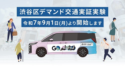 東京都渋谷区とGOは、渋谷区内の移動の利便性向上を目指す実証実験として「GOシャトル」を活用した渋谷区デマンド交通実証実験を2025年9月1日~2026年3月31日の期間に実施する。