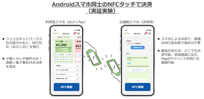 FPoSによる確実な身元確認と当人認証を最大限に活用しているのが、群馬県前橋市の電子地域通貨「めぶくPay」だという。現在、「めぶくPay」では、FPoSを活用したQRコード決済サービスを提供しているが、今後は、さらに利便性の高いNFCタッチ決済サービスの実現を目指すという。