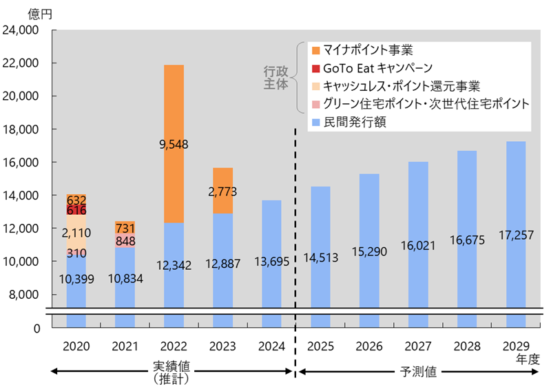 なお、2024年度は、ポイントを活用した大規模な行政施策が実施されなかったため、推計対象は民間発行額のみとしている。
